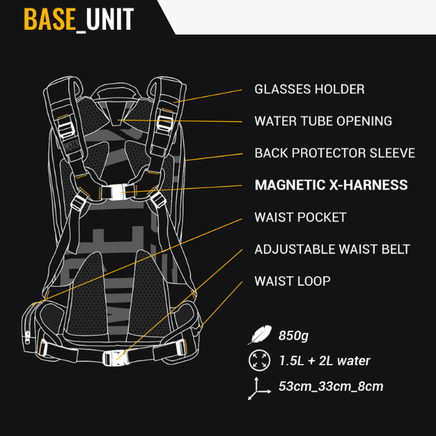 The common part for all your adventures. All packs zip onto the base unit.