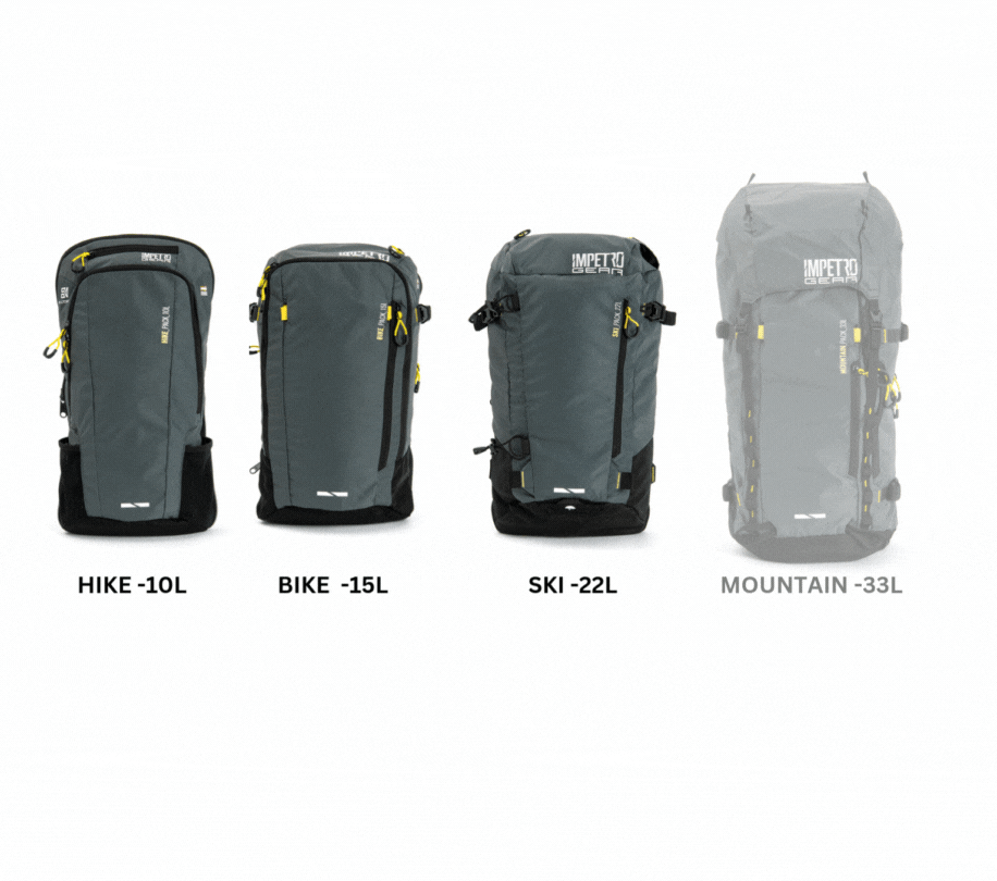 4 activity specific packs to choose from (Hike, Bike, Ski, Mountain).